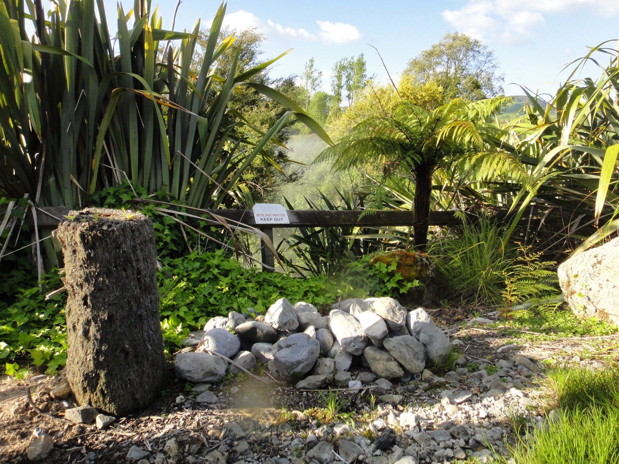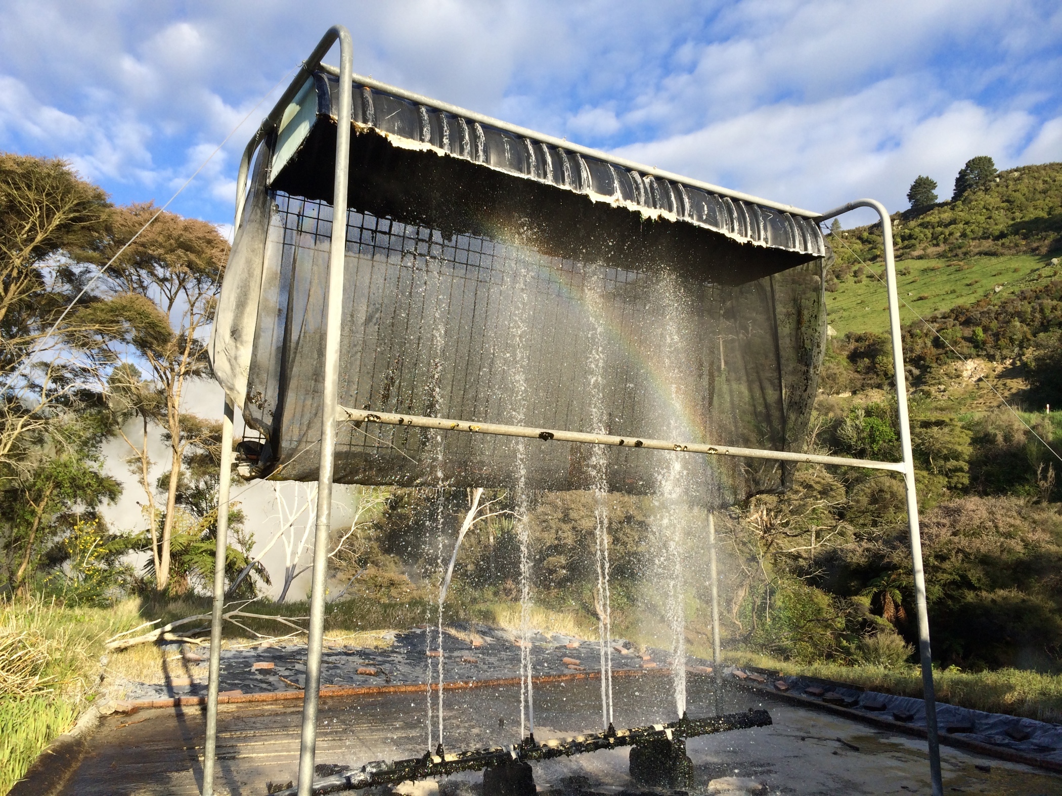 The spring at the start of the cooling process. It comes out of the ground at 98degrees. After a good soak we drove back to Rotoura and had a takeaway in the camper van.