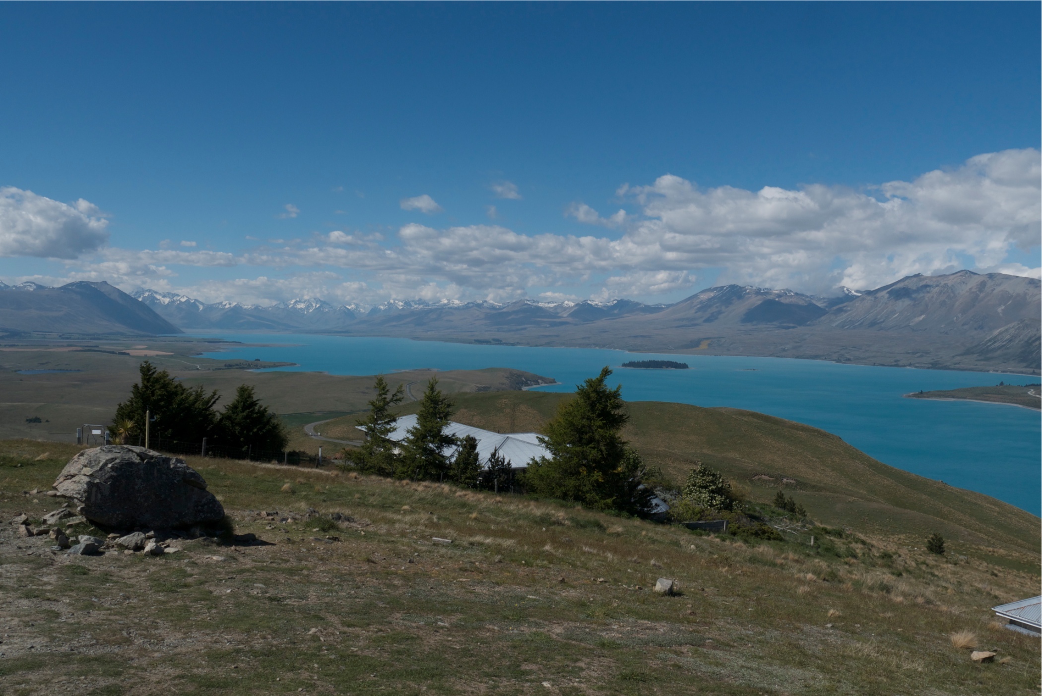View from the top of Mount John looking down to Lake Takepo. It was really this amazing turquoise blue colour.