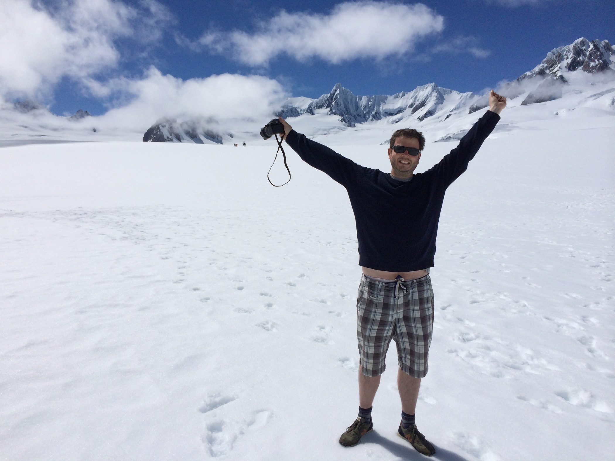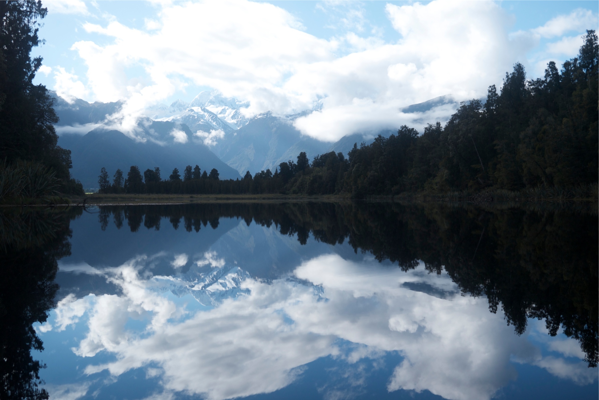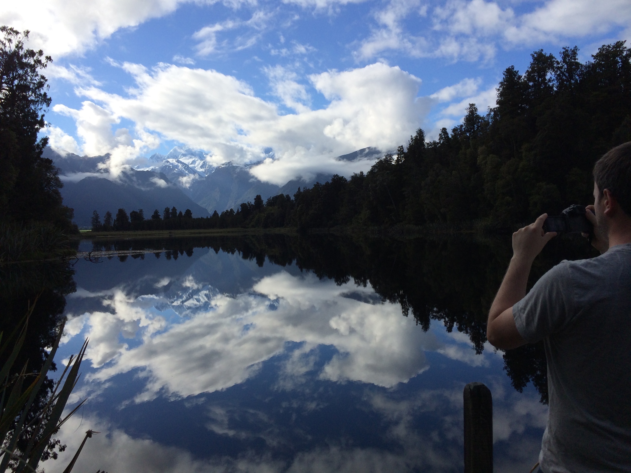 Made Gareth get up early today to go to Lake Matheson to take reflection photos of Mt Cook and Mt Tasman. It was quite a clear morning and the lake was amazingly still. Then back to campsite and walk into town to catch the helicopter to the top of Fox Glacier.