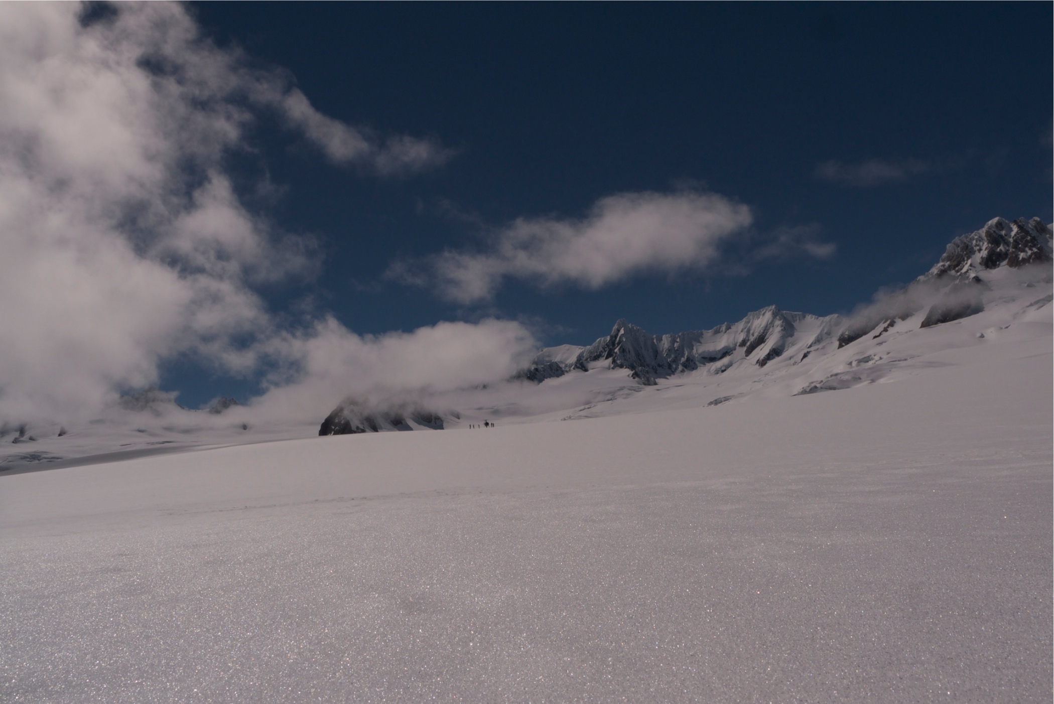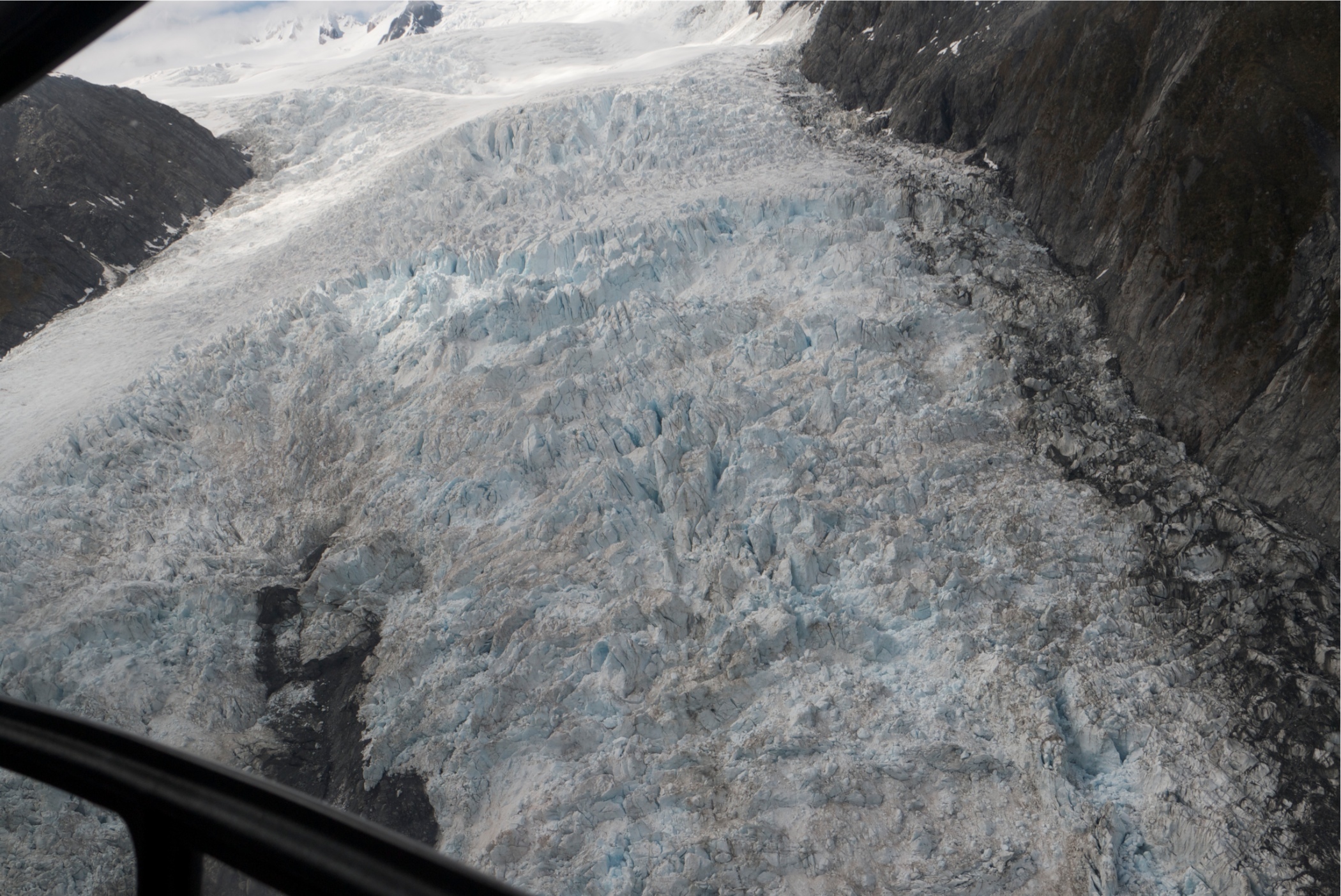 It's really hard to see the scale of the glacier. The pilot pointed out a group of walkers hiking up the glacier. They were tiny black dots, not in the photo. The blue colour is really vibrant as well also most like food colouring in icing. It all feel a bit fake.