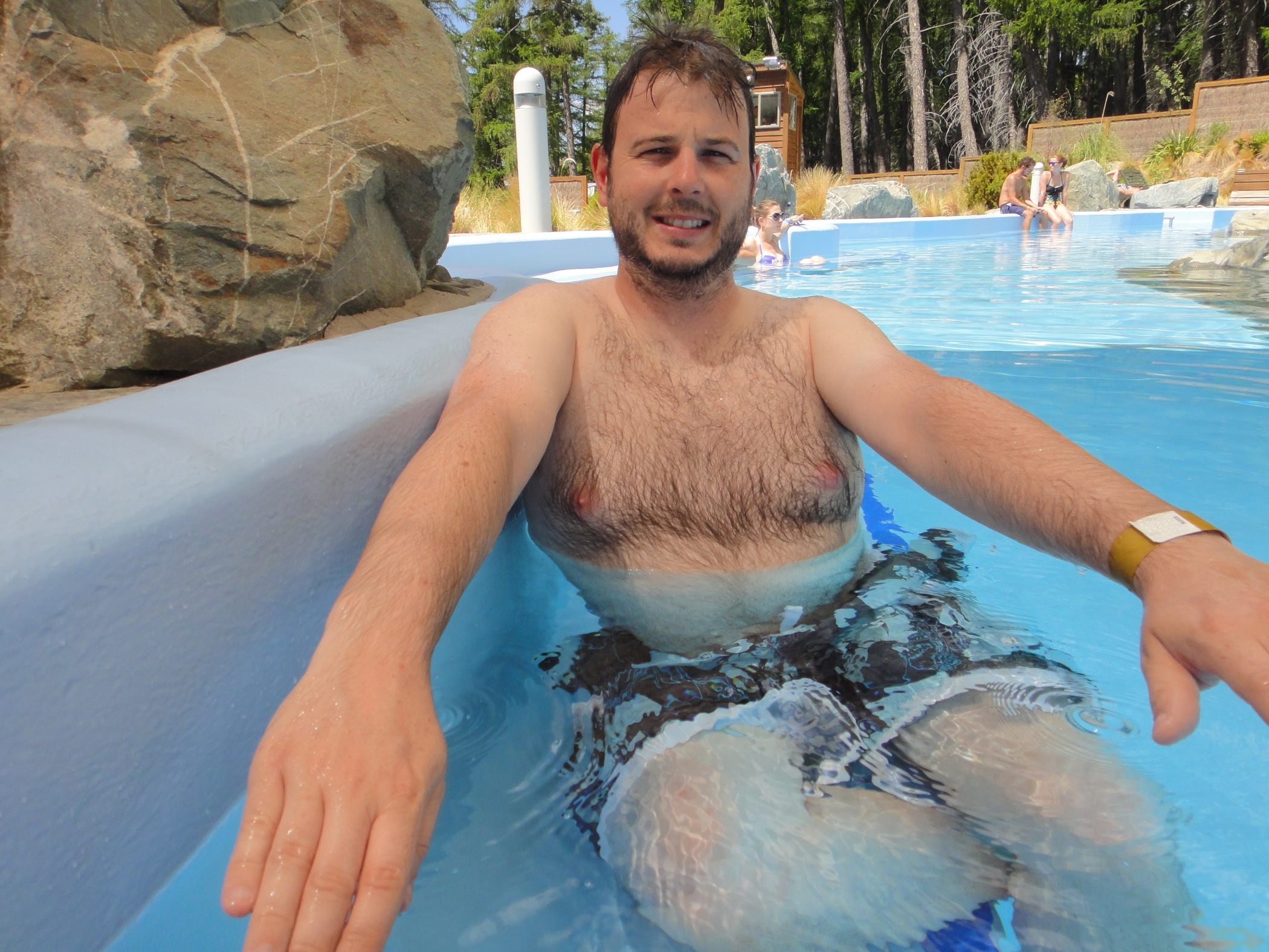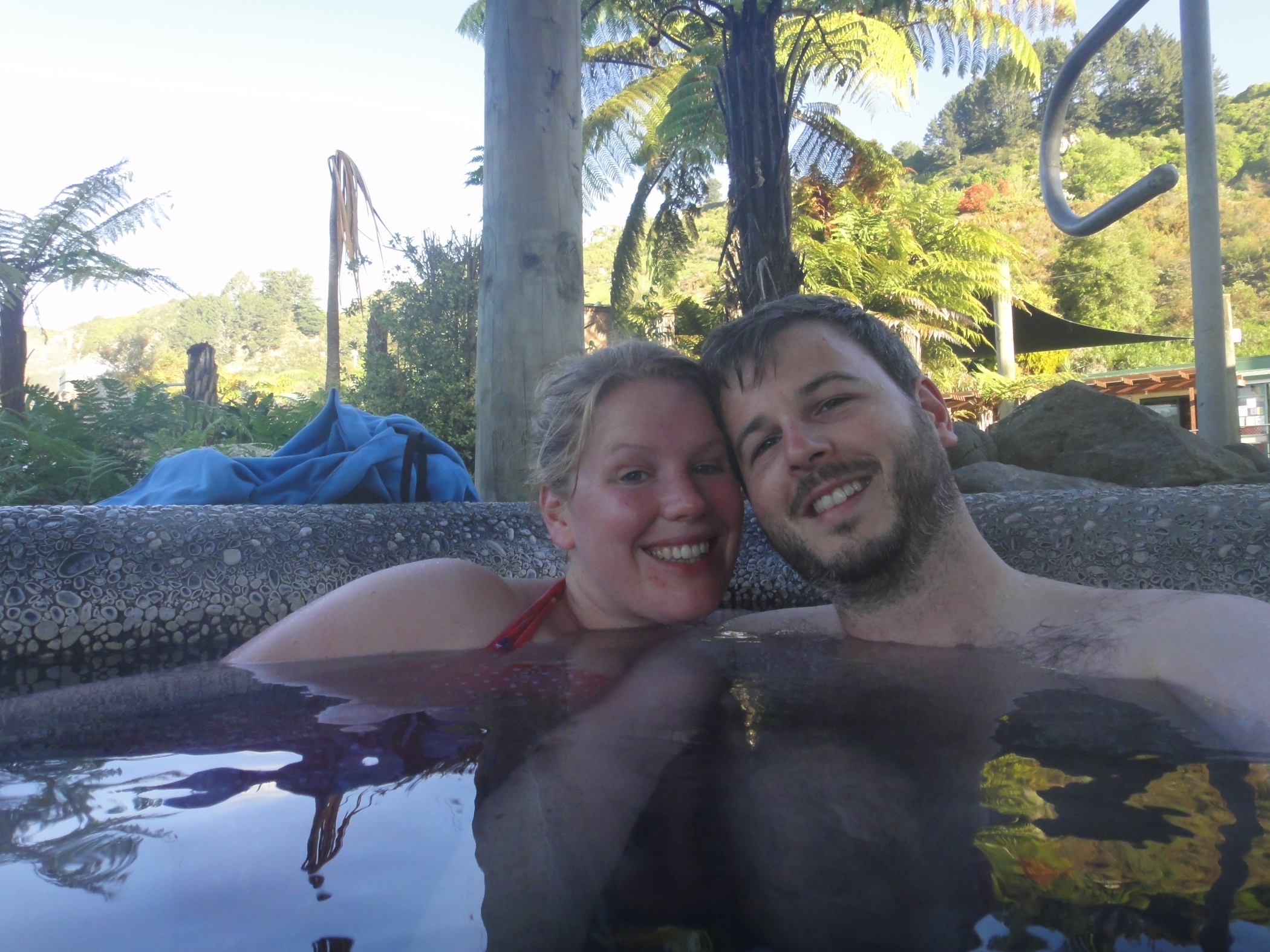 Had a lazy morning after last nights star gazing fun. We went to the hot pools right next to the campsite and sat and enjoyed the view. Gareth showing off his t.shirt tan!