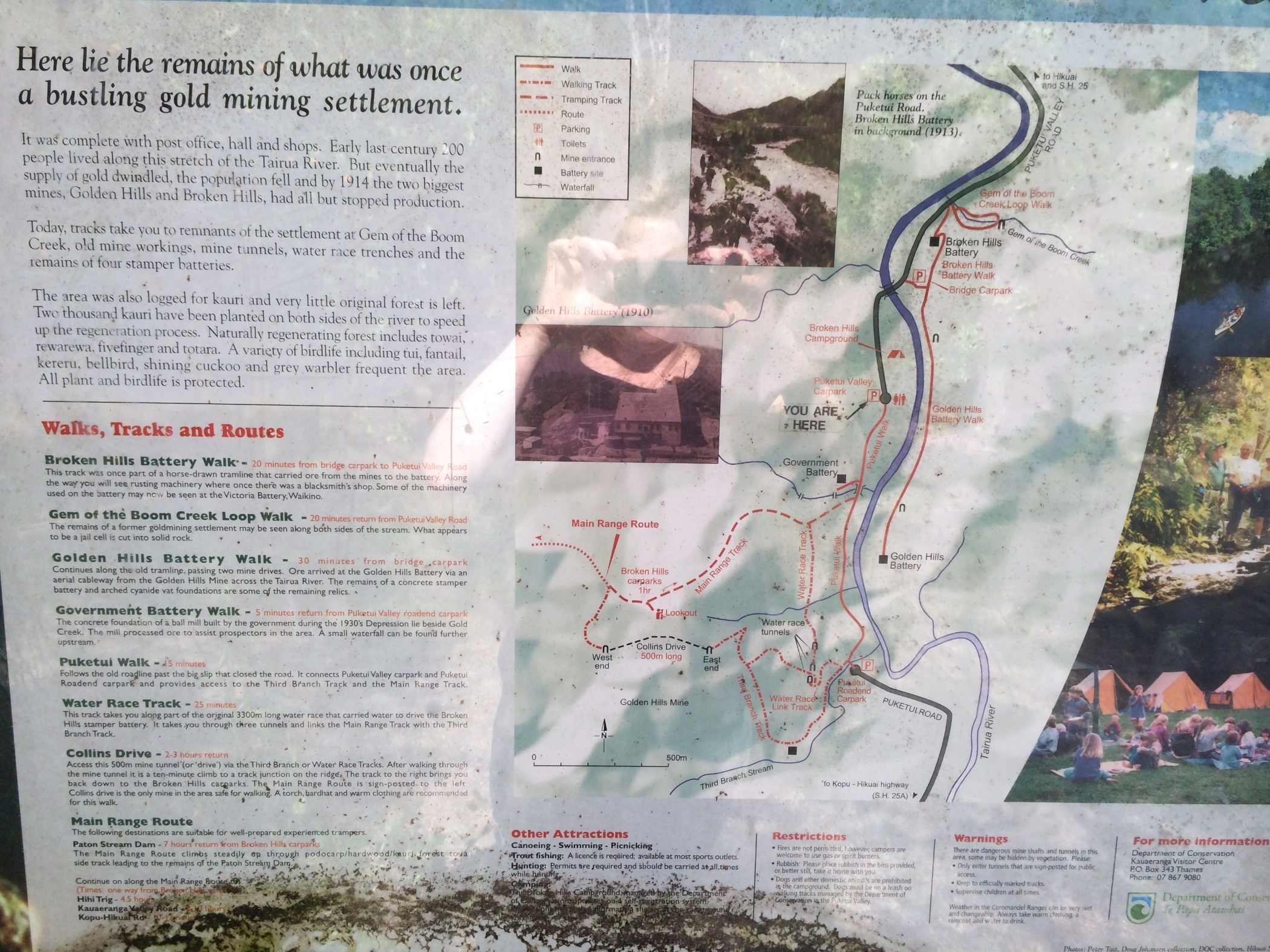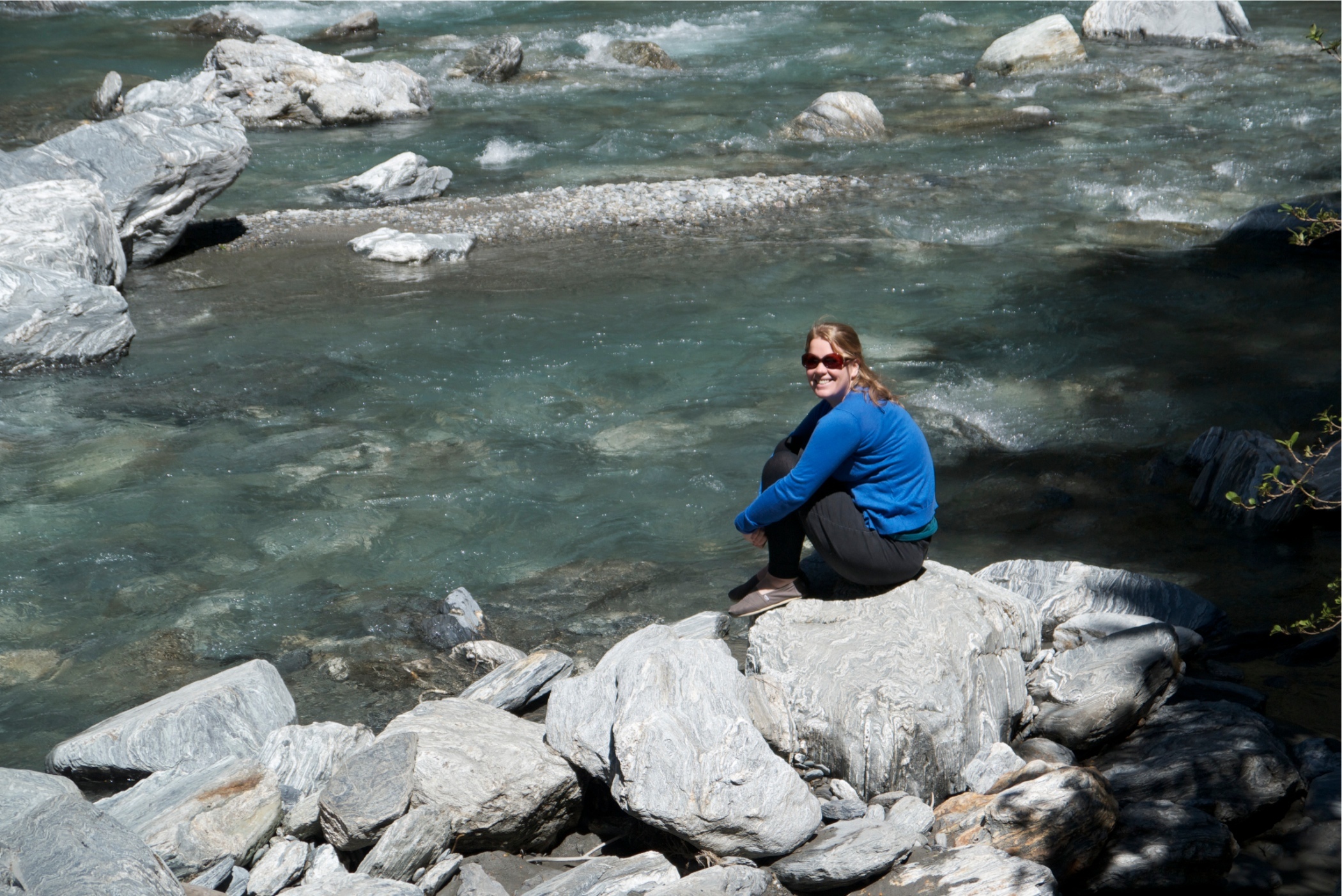 There are lots of left over pieces of the mining history along the route. At some point the railway tracks would veer off the cliff and into the river where a landslide or avalanche had forced it. At one point during the walk we had to clamber over a recent landslide which had brought down a tree.