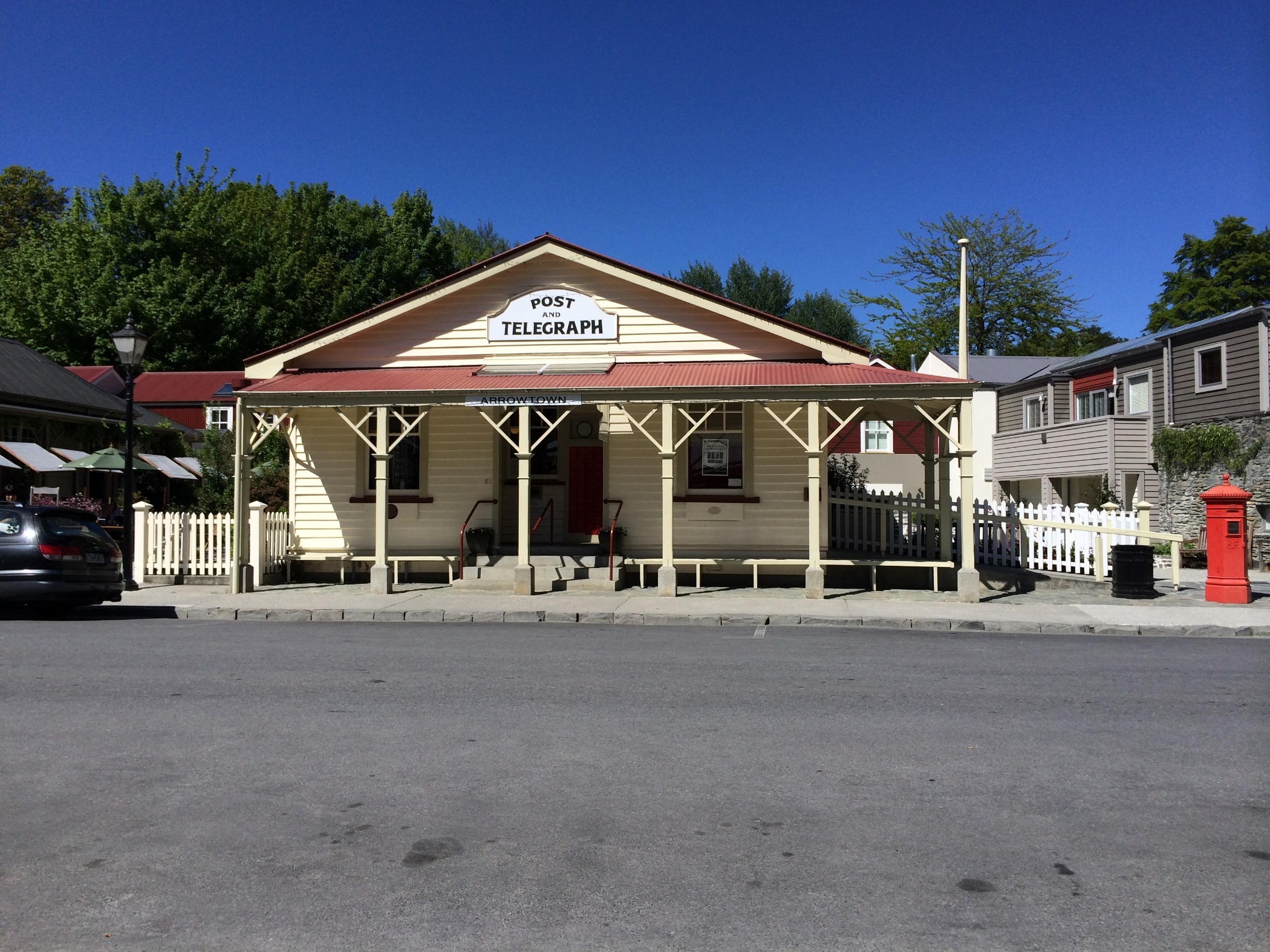 The look out point for New Zealand's highest sealed road. The Camper made some very interesting noises as we went down into Arrowtown. Stayed in a lovely little motel, we needed a night in a bed. Walked into Arrowtown for dinner in a lovely pub garden by the river.