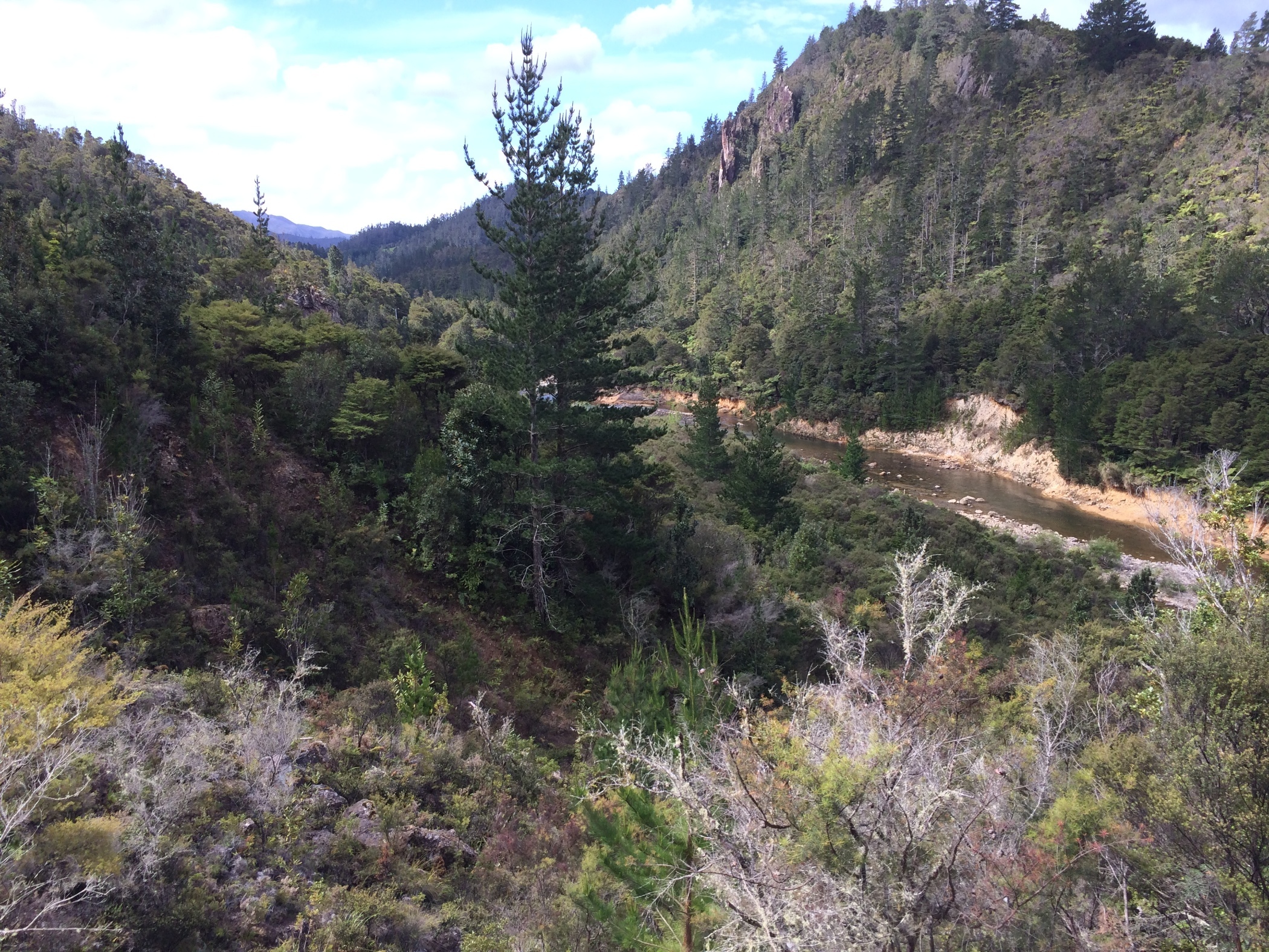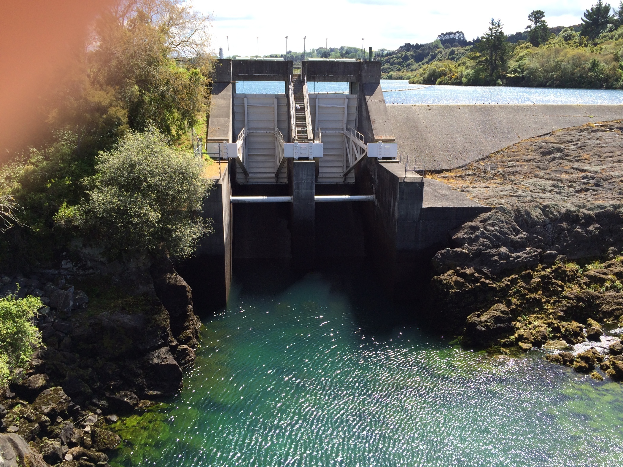 We had lunch in the car park in the sunshine and away from the smell. Then we drove onto Arataitai dam to see the water release which happens 4 times a day. The New Zealand Frenzy book had described a walk down stream from the dam where you can sit on the rocks next to the river bank and watch the water. We followed the instructions but couldn't find a play we felt happy to sit. Having watched the river rise from the bridge over the river we were glad we didn't try this.