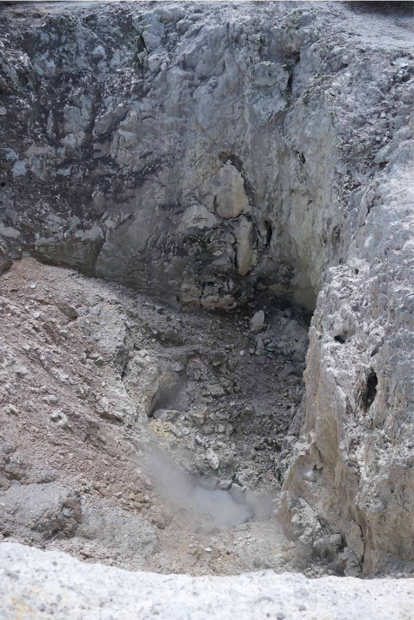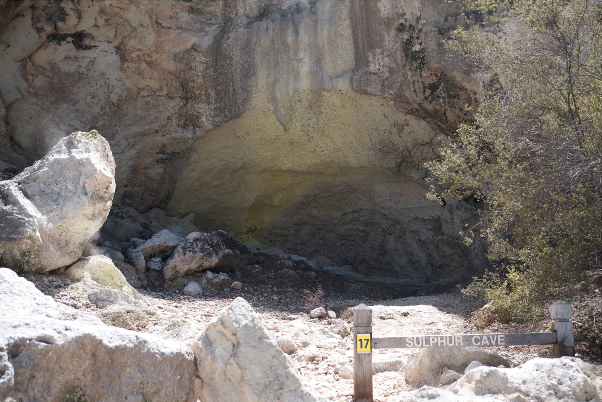 This is called the Sulphur Cave. Called this because of the crystallised sulphur formed by the cooling sulphur gases that come out of the ground. the crystals are the yellow area.