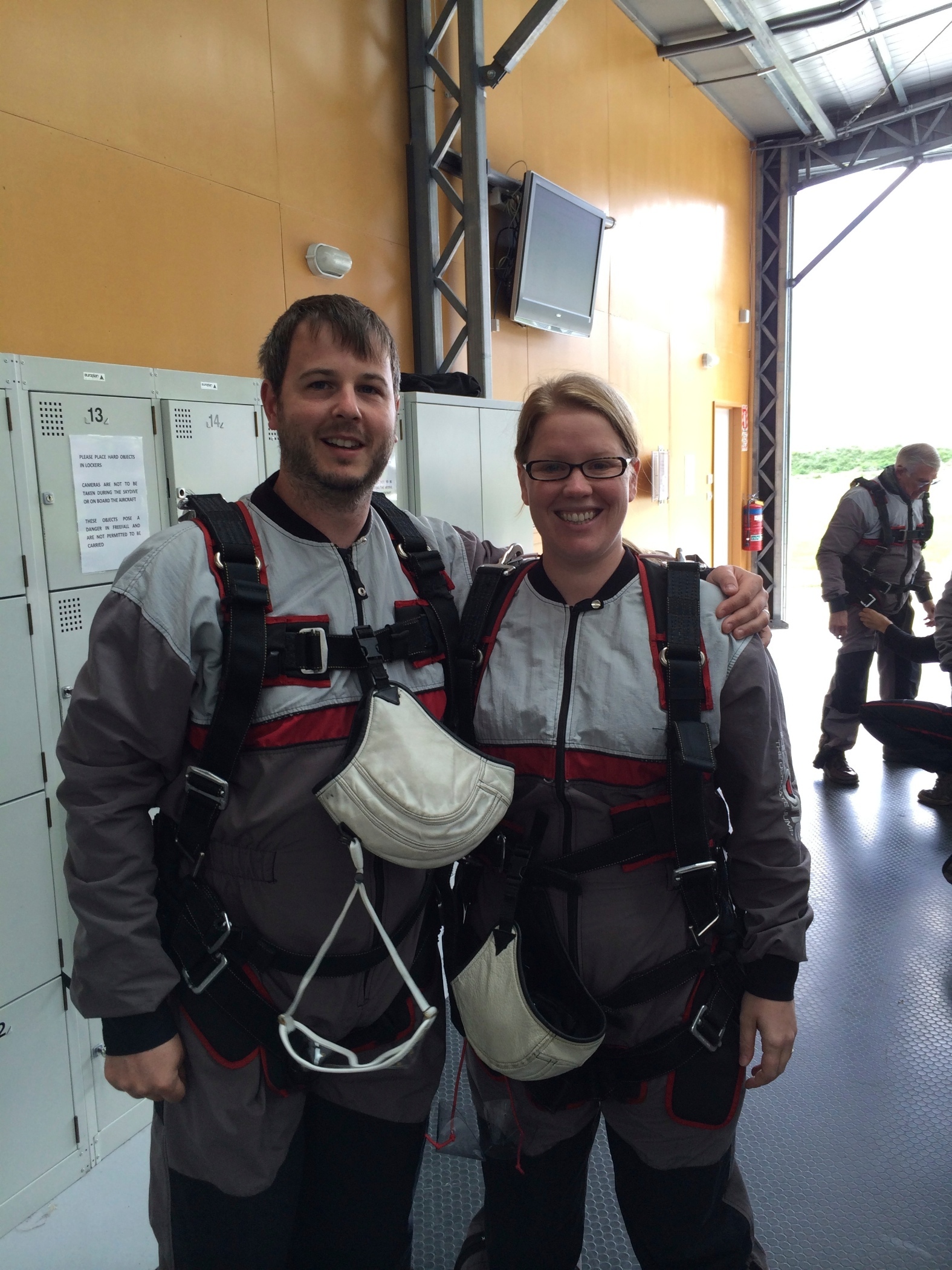 Today we did our sky dive 15000ft. I was very nervous as we had been booked onto the 8.30am slot but it got pushed because of the cloud. we eventually did it at 11.30. I would do it again not sure i'd ever be able to do it on my own. I didn't really like the parachute release bit but the free fall and the floating down after the parachute has released was amazing all the noise of the plane and the free fall had gone and there was just silence.