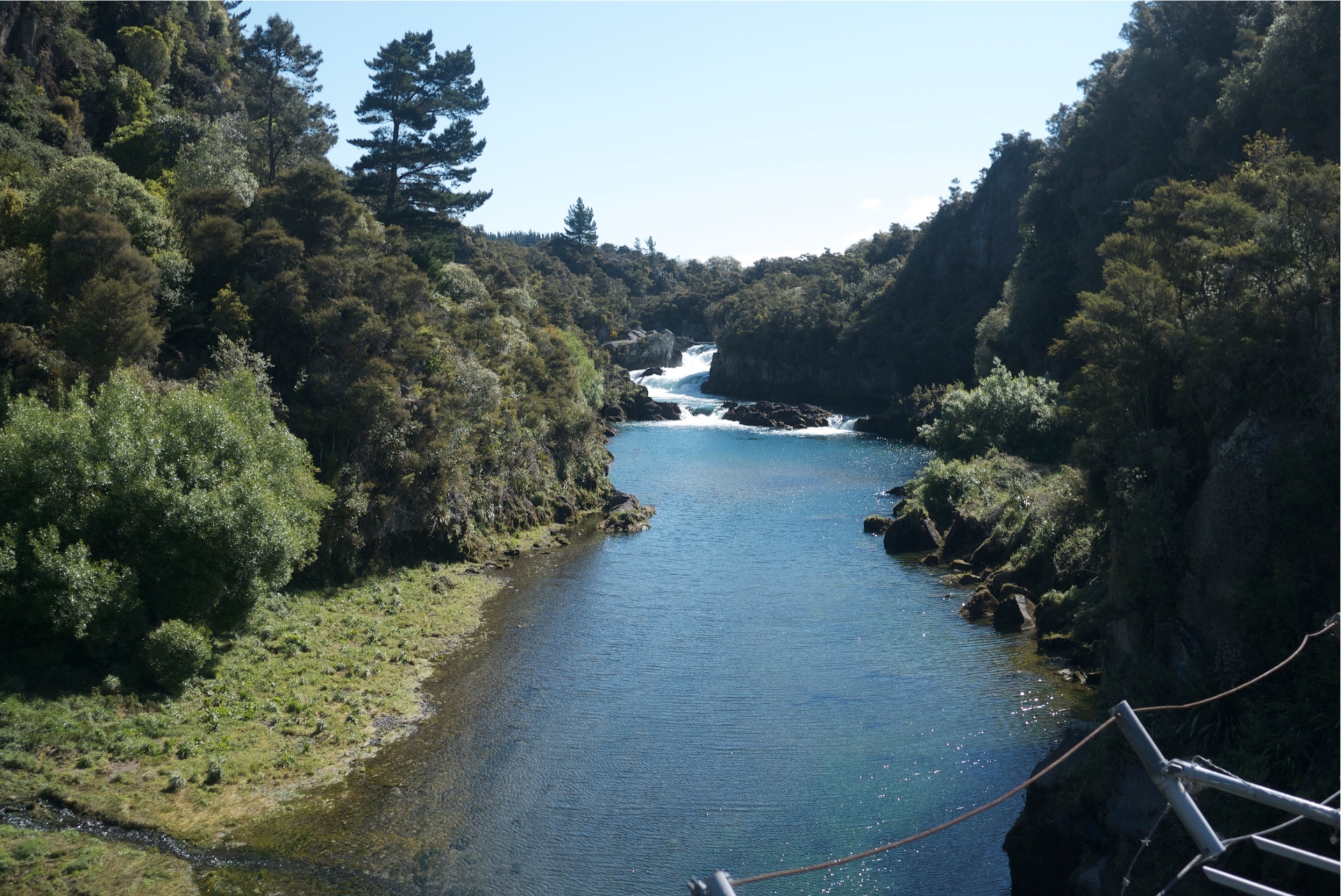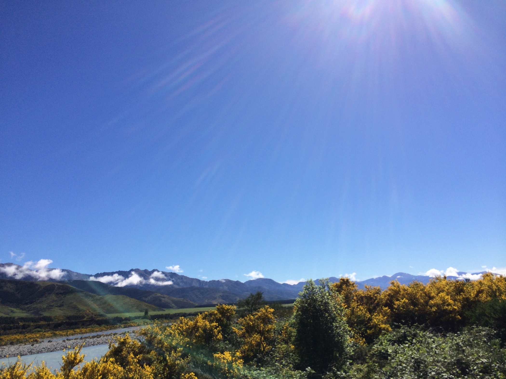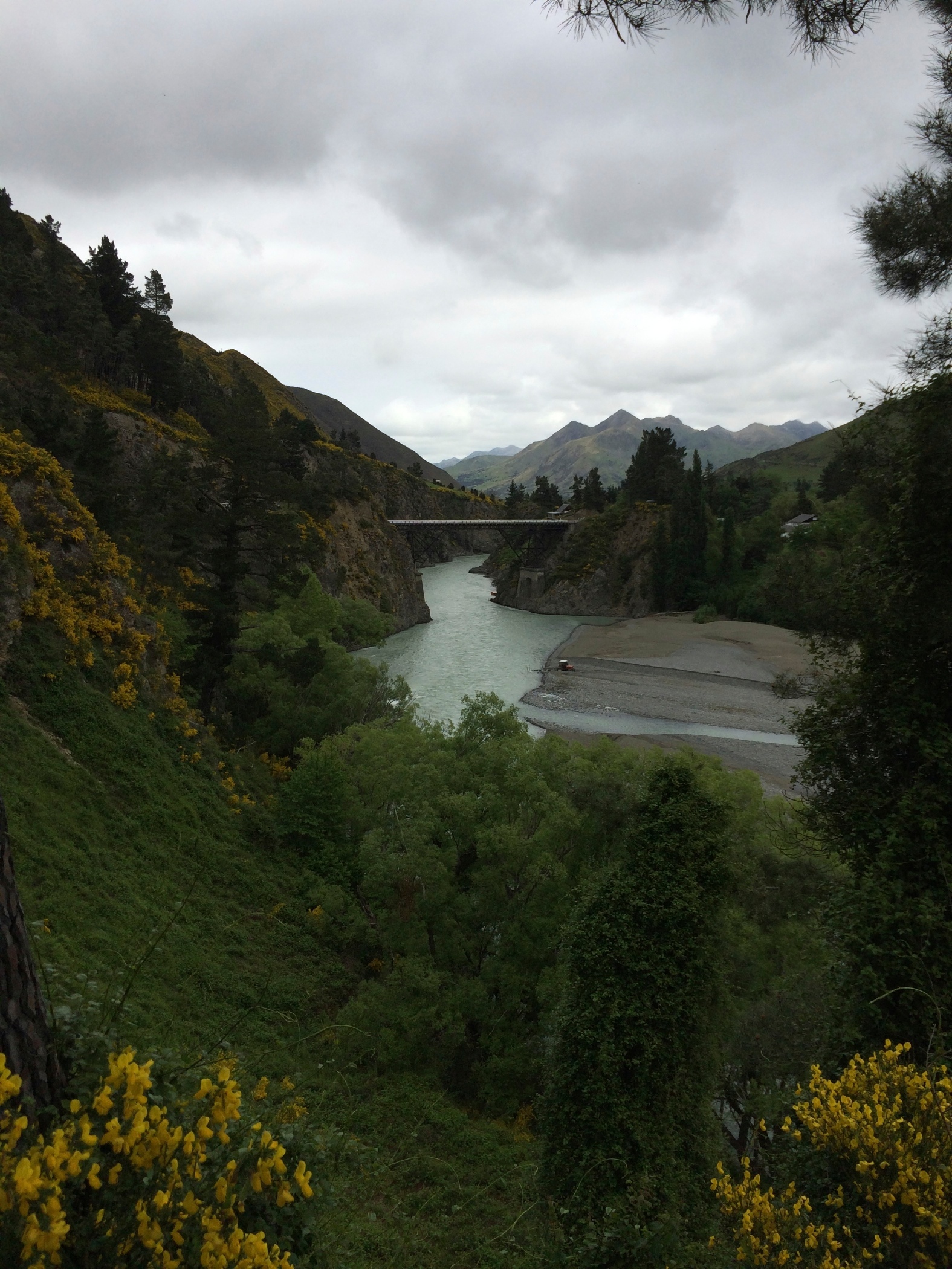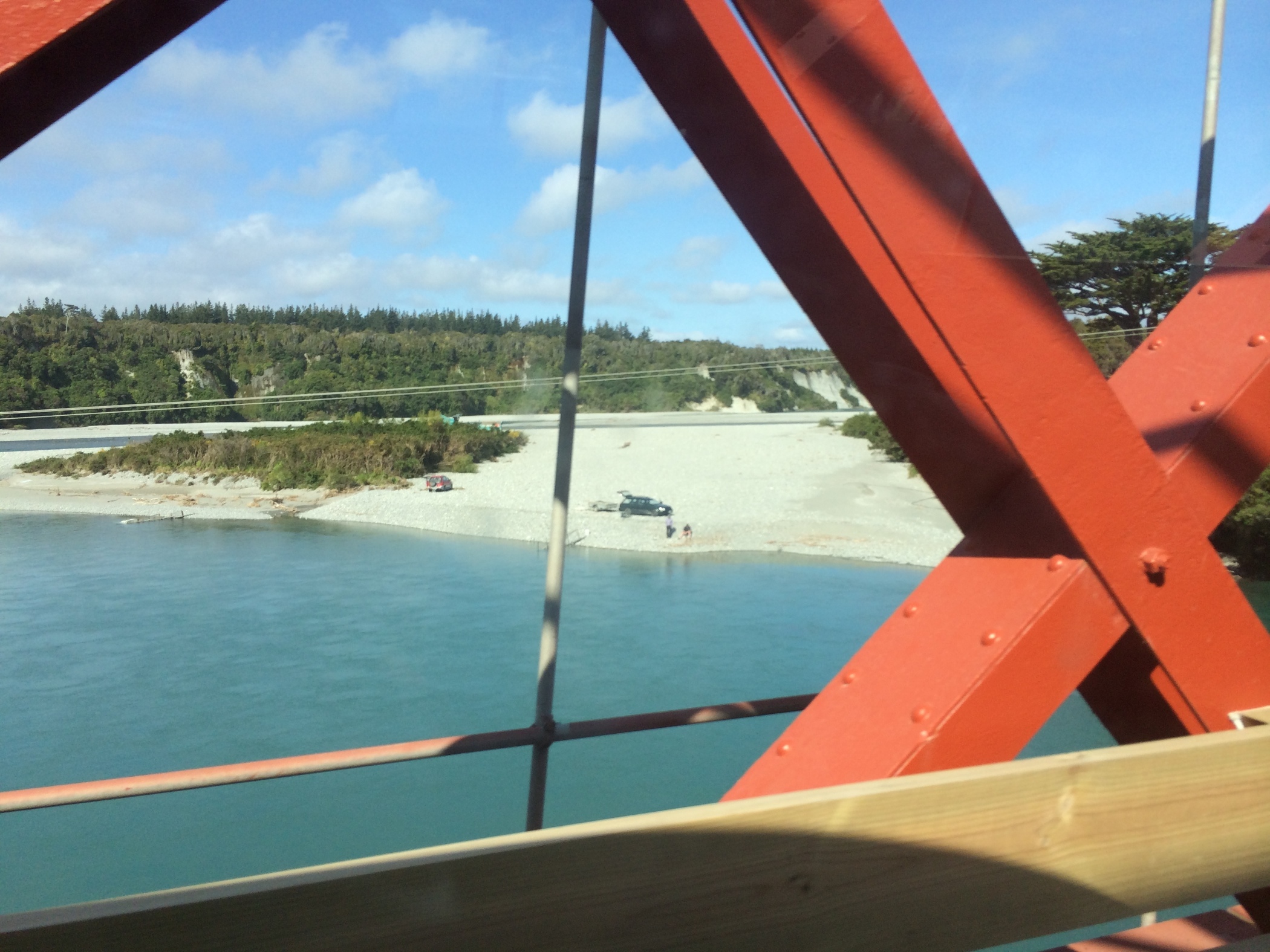 View from the road leading into Hanmer Springs. The river is milky colour due to the ground up rock floor from the Glaciers. they also do bunny jumps from the bridge.