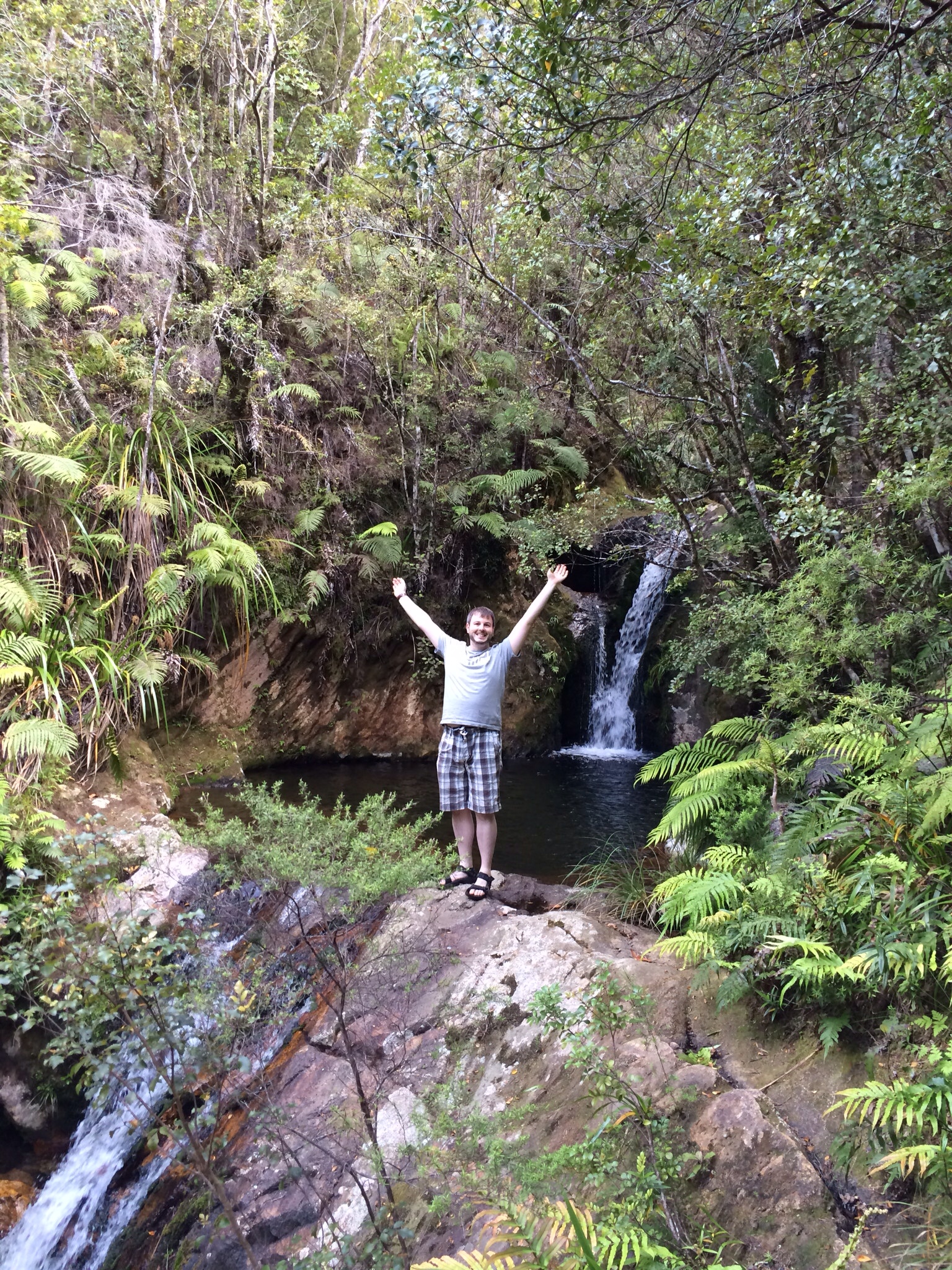 Gareth at the waterfall it did take a bit of scrambling over rocks at river edge to get to. He definitely didn't want to swim!