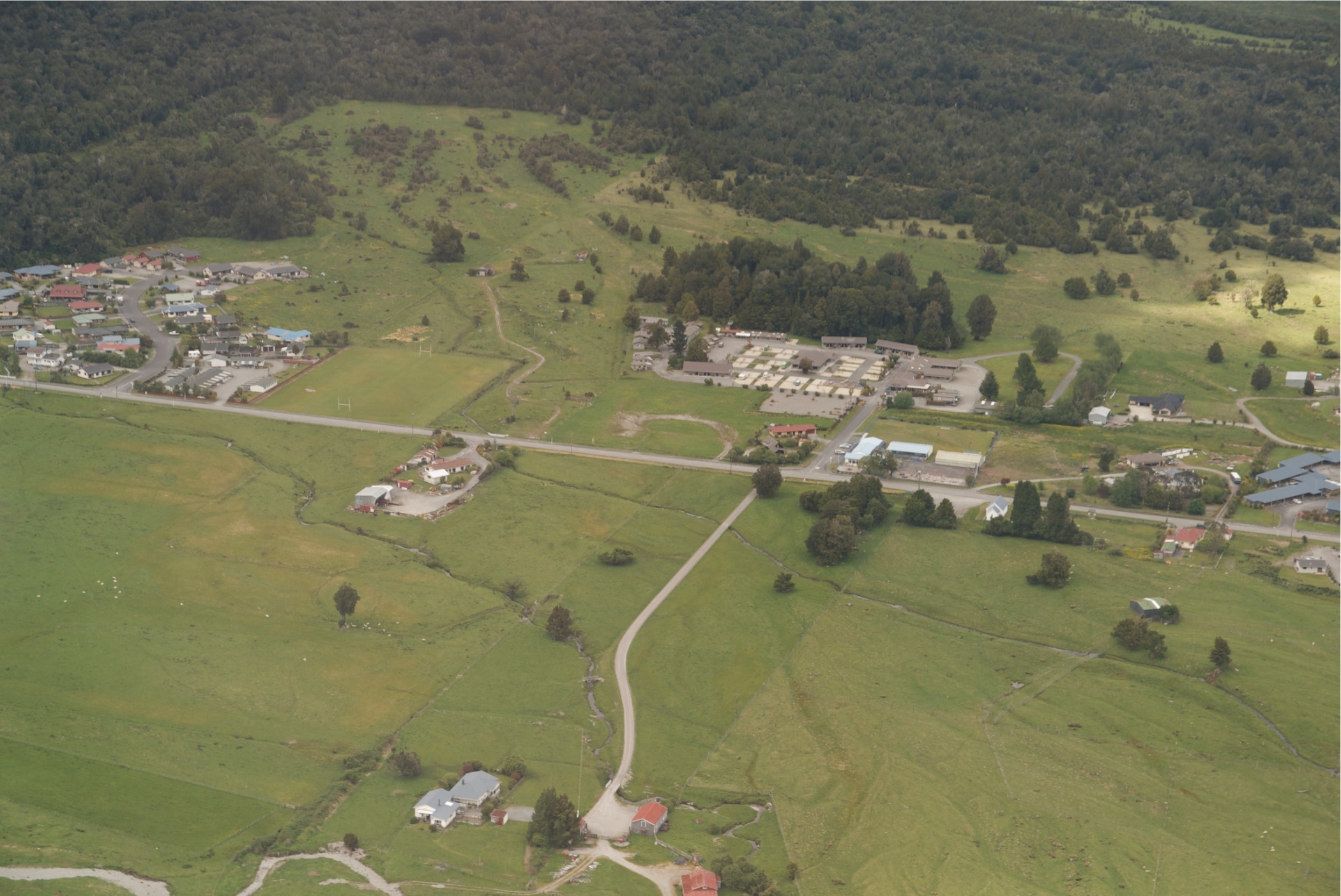 This is looking down on the milky blue water of the Frying Pan Flats and through to the green water of Lake Ngakoro.
