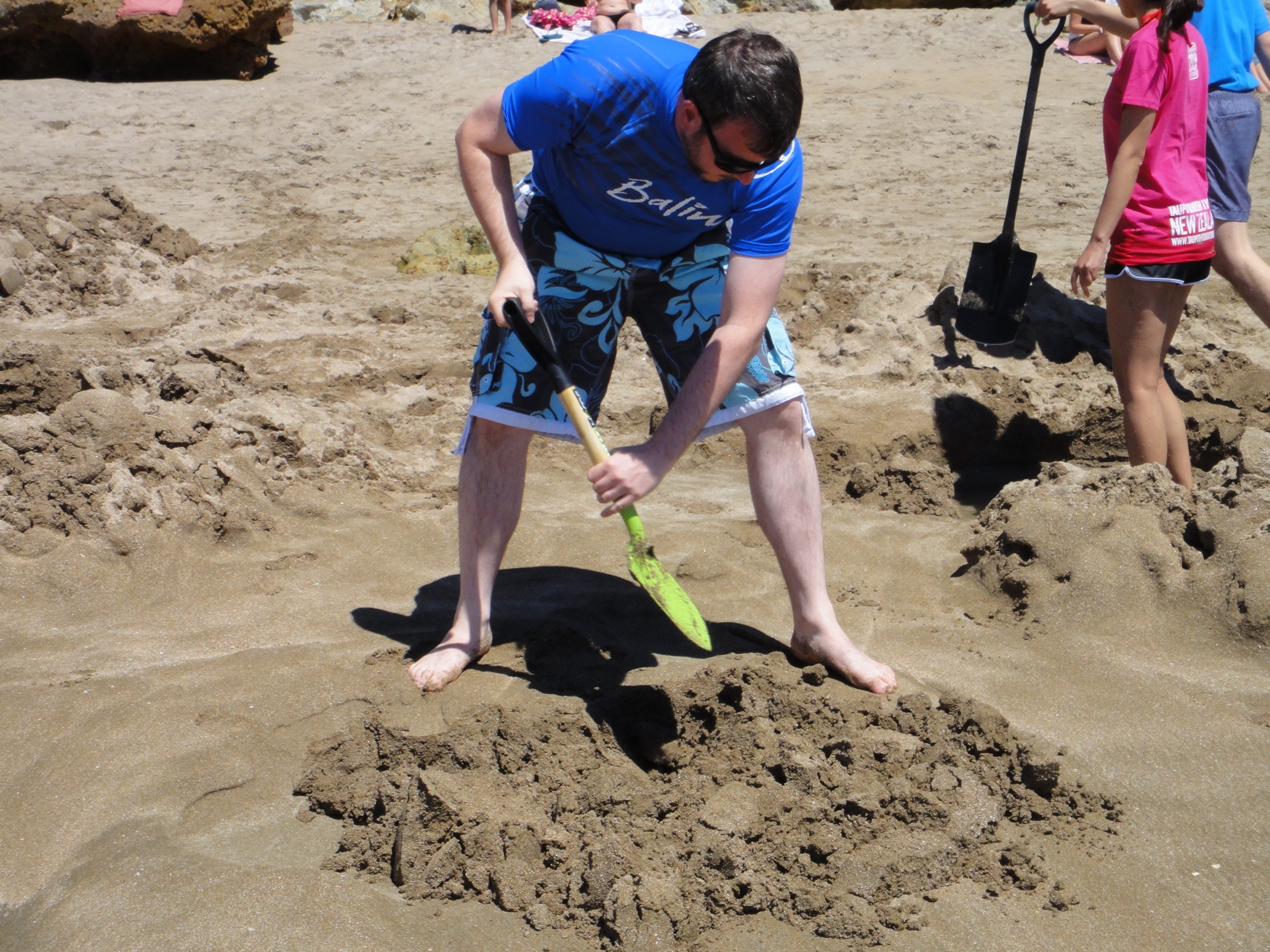 Gareth helping the American couple repair a pool before the tide comes in again. By his left foot you can see another spring bubbling up through the sand. It disappears every time the wave washes over it.