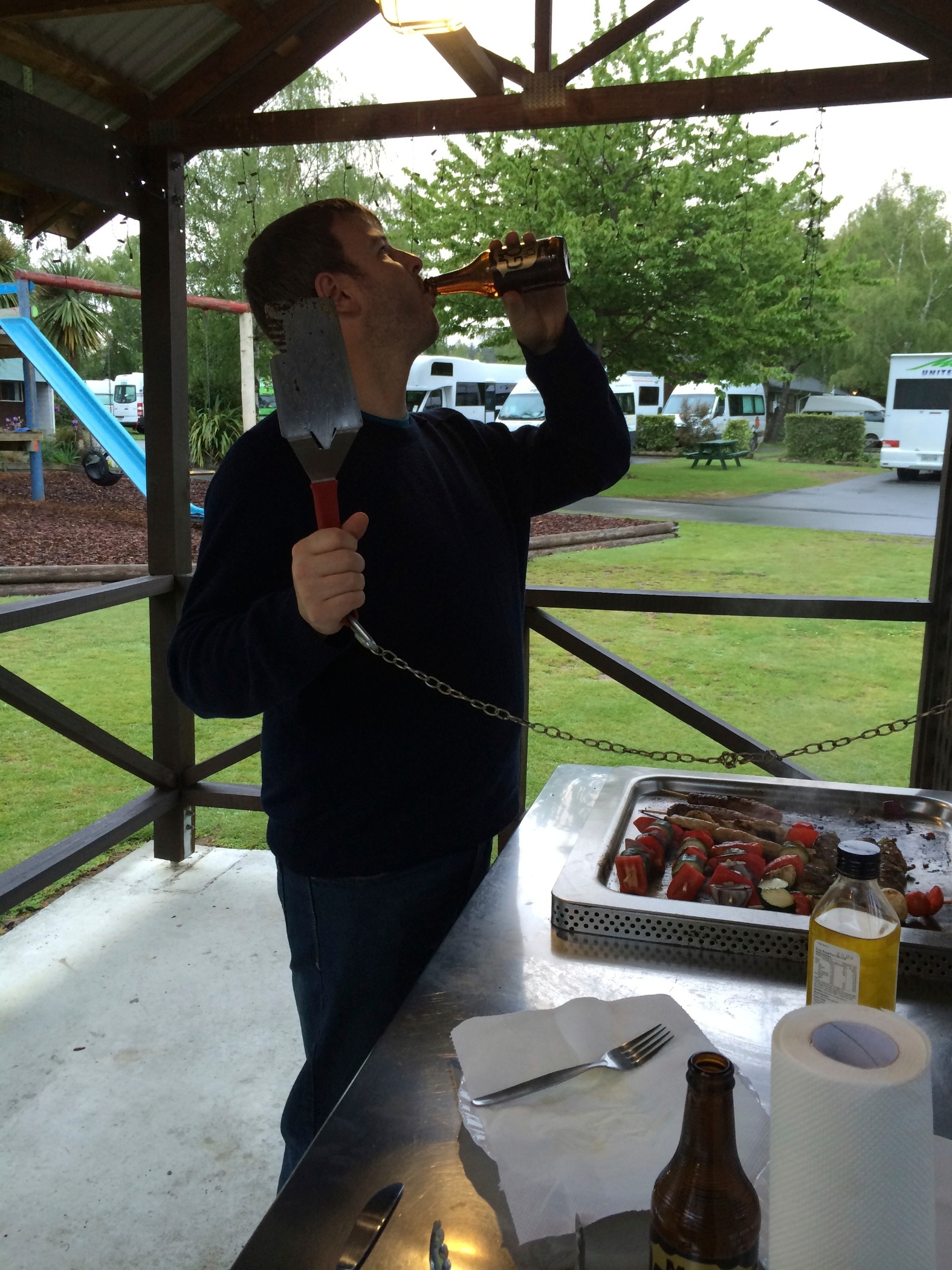 We went on the Gondola up to the viewing platforms. We saw the Bungy platform no jumpers today. Around the restaurant at the top there was a luge run we had a go it was a lot more fun than we had expected. Had BBQ tea at the camp site drank beer in the sun rang Em.