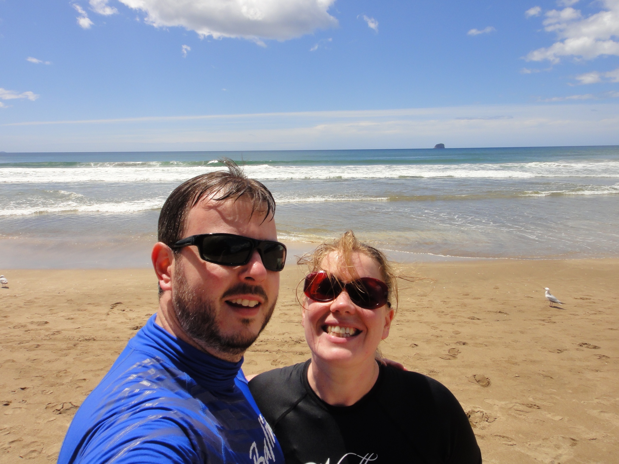 After giving up on the hot pools and because the sun was so warm we decided to have a swim as we might not get another chance and the South Island might be way too cold. The surf was to strong to swim but had splashed around a bit and it was freezing.
