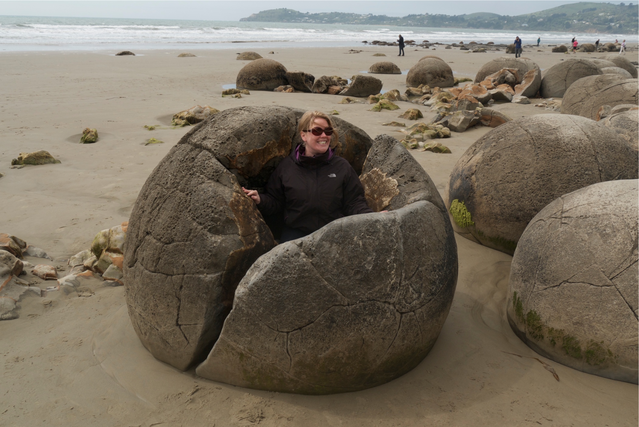 Drove from Dunedin to Lake Takepo stopping off on the way at the Moeraki boulders. These were really cool and more than I was expecting. Massive stones perfectly round in a small areas of a long sandy beach.